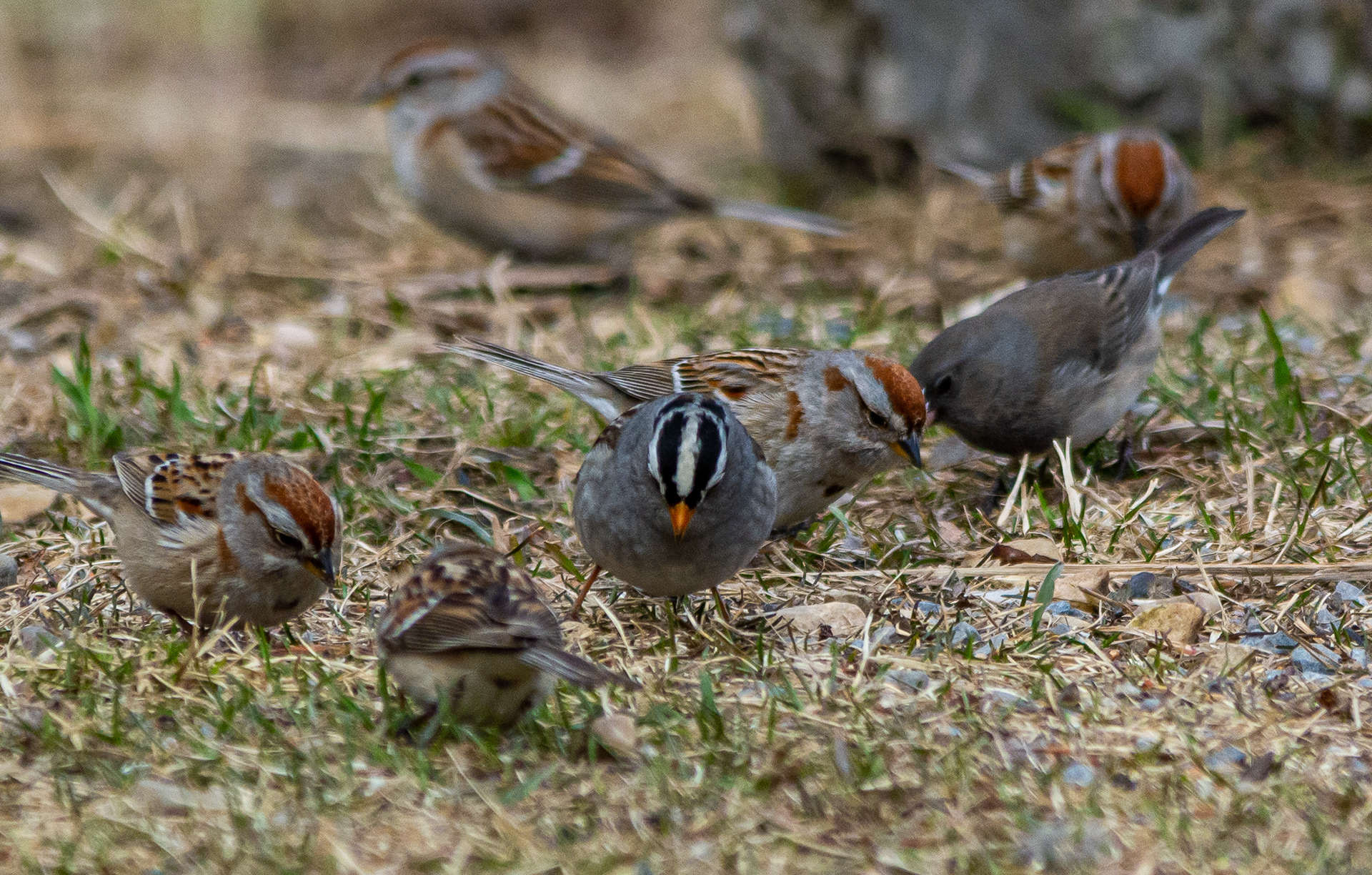American Tree Sparrows, White-crowned Sparrow, Dark-eyed Junco